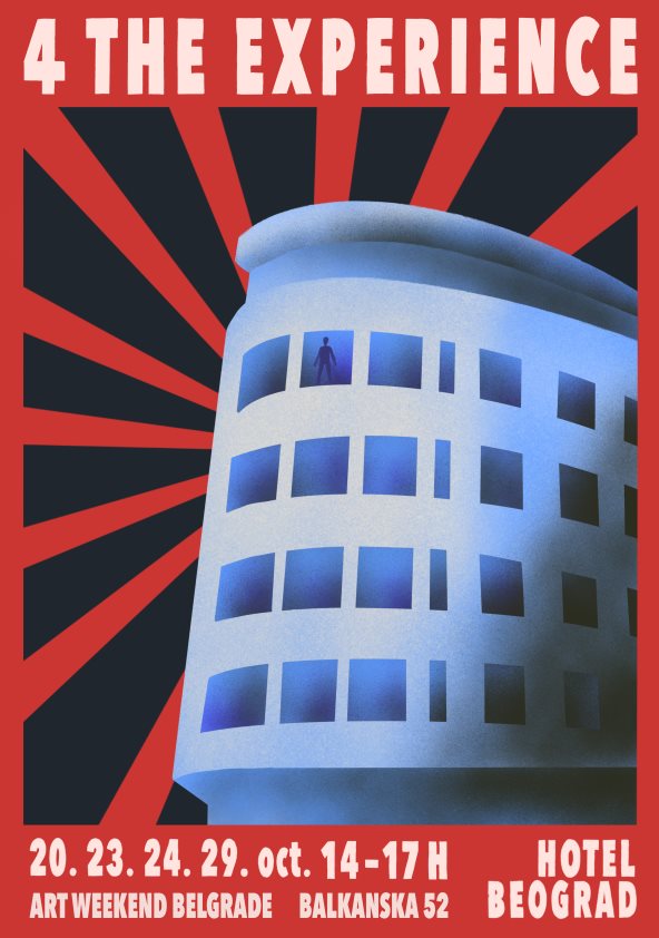 Performans “4 The Experience” održava se u Hotelu Beograd u okviru “Belgrade Art Week-a”. Odvija se na oko 50 kvadratnih metara podeljenih u četiri sobe, na četvrtom spratu hotela. Iako se izvodi na malom prostoru performans uspeva da uvuče gledaoca u vrstu lavirinta, kako prostornog tako i vremenskog. Svaka osoba iz publike dobija posban tretman i na drugačiji način ispričanu priču.