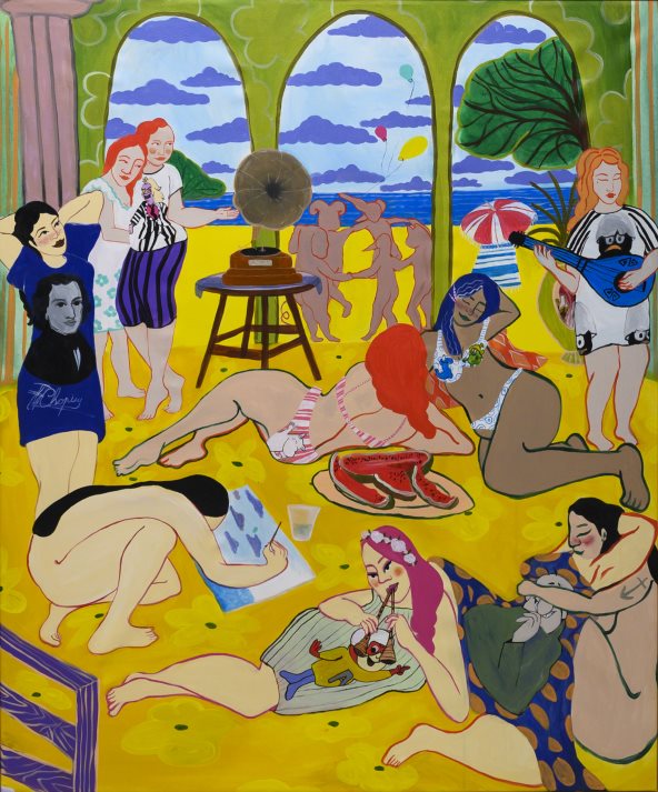 ’’Oblici su ženstveni, uvrnuti, vijugavi, dvosmisleni, sladostrasni, elegantni i nespretni. Ove zaobljene forme ženskih tela i njihovo fleksibilno i opušteno držanje pojačavaju osećaj radosti i slobode koji proizilaze iz rada. Slikarka — bez sumnje — nastoji da svoju umetnost usidri na tlu koje je dovoljno dosledno da podrži kadence i plesove koje nosi njen rad.’’ – kaže u katalogu kustoskinja izložbe, Milica Zorić i dodaje: