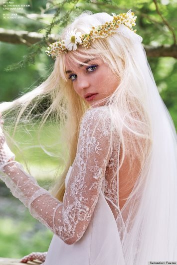 Na fotografijama Sebastiana Faena zapravo gotovo uopšte nema golotinje, a vibe koji prenose je miljama daleko od stereotipne porno estetike. Zadržani su, međutim, ključni elementi Cicciolininog stila koji uključuju hipi venčiće, cveće, i mnogo slojeva čipkastih materijala, koji na Mirandi izgledaju sjajno.