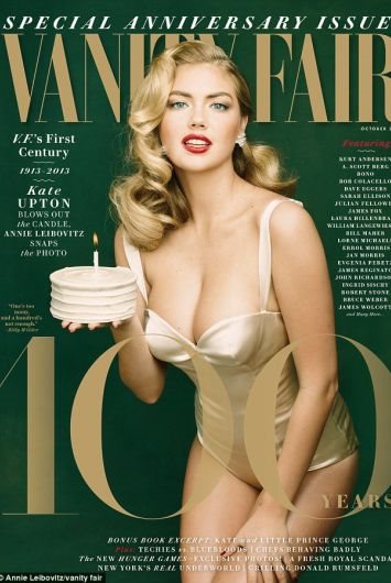 Dvadesetjednogodišnja Kate Upton "oživela" je Marilyn Monroe povodom stote godišnjice izdavanja časopisa Vanity Fair. Zanosna plavuša na naslovnici, koju je snimila poznata fotografkinja Annie Leibovitz, pozira u zlatnom dekoltiranom bodiju držeći u ruci rođendansku tortu.