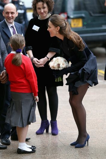 Za službenu posetu humanitarnom događaju, Kate je odabrala Orla Kiely suknju, MaxMara jaknu i plave Alexander McQueen štikle. Kraljevsko držanje, međutim, pomalo je poremetio vetar bacivši je u problem à la Marilyn Monroe, ali Kate ipak uspešno iskobeljala iz situacije.