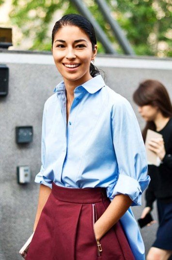 Klasična bela ili svetloplava košulja (besprekorno ispeglana ,naravno) sa kragnom ide savršeno u paru sa ženstvenim suknjama pun krug, midi dužine. Ukoliko želite da izgledate manje strogo, a više kul, savetujemo da otkopčate jedno, ili dva gornja dugmeta, što će jednoj na prvi pogled previše formalnoj kombinaciji dati opušteni vajb.