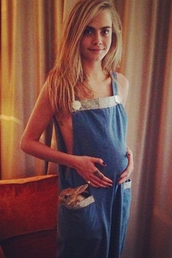 Ali zbog čega? Fotke na kojima se Cara našalila i pretvarala se da je u drugom stanju objavio je In Pig, brend koji je lansirala Carina rođaka Edwina Gieve.