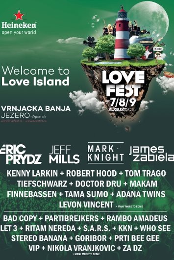 Prvi dan festivala na glavnoj muzičkoj bini rezervisan je za legende Detroit tehna. Na Fire Stage-u će nastupiti Jeff Mills, Kenny Larkin i Robert Hood, kome će Lovefest biti prvo gostovanje pred publikom na Balkanu. Drugo festivalsko veče će pratiti nešto komercijalniji zvuk i najveća svetska house atrakcija Eric Prydz. Iste noći nastupiće i holandski di-džej Tom Trago poznat po hitu „Use me again“, dok će program na glavnoj muzičkoj bini zatvoriti Marko Nastić. Poslednje festivalsko veče otvoriće tech house dvojac Tiefschwarz, dok će zvezda večeri biće britanski di-džej i producent Mark Knight. Festival najvatrenije muzičke bine zatvoriće James Zabiela, kome će ovo biti drugi nastup pred fanovima Heineken Lovefesta.