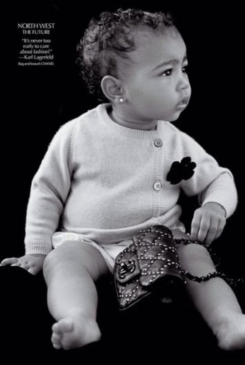 Crno-belu fotografiju napravio je Michael Avedon, unuk Richarda Avedona, ikone u svetu fotografije, a čitavu sliku zaokružuje Carl Lagerfeld rečima: Nikada nije prerano za modu! Od ćerkice Kim i Kanyea ništa manje nismo ni očekivali. Ovo izdanje CR Fashion Book-a izlazi 4. septembra 2014, a vi dobro pogledajte fotografije, jer gledate u budućnost mode.