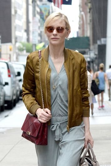 Glumica Cate Blanchett posljednjih nekolika dana pažnju javnosti privlači ulogom u pozorišnoj predstavi The Maids koju je u saradnji s Benedictom Andrewsom adaptirao njen suprug Andrew Upton. Na matine, poznata glumica e stigla u sofisticiranoj kombinaciji koja se sastojala od svetlozelenog kombinezona, zlatne jakne, čizmica od brušene kože i dve elegantne torbe.