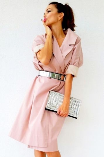 Prvi, u ledeno sivoj boji, Seve je upotpunila bajkovitim salonkama Manolo Blahnika u ciklama boji i sivu clutch torbicu. Drugi trenč, u nežno ružičastom tonu, u struku je stegla metalik srebrnim kaišem, a potom finiširala metalik torbicom i salonkama u špic modnog branda Jimmy Choo.