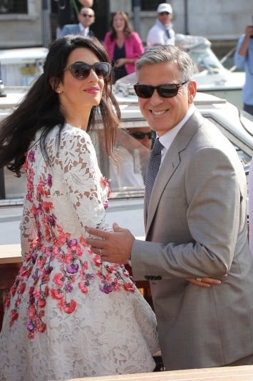 Britanka libanskog porekla blistala je u nedelju, rano ujutru kada se pojavila u eterično beloj, čipkanoj haljini sa potpisom Giambattiste Vallia, s efektnim, cvetnim detaljem u prednjem delu. Georgey koji je takođe bio u društvu svoje drage, bio je besprekorno elegantan u Armani odelu, ali daleko veću pažnju je privukla Amal kojoj je haljina neobičnog, fluidnog kroja u donjem delu naglasila još više vitku građu i savršen ten.