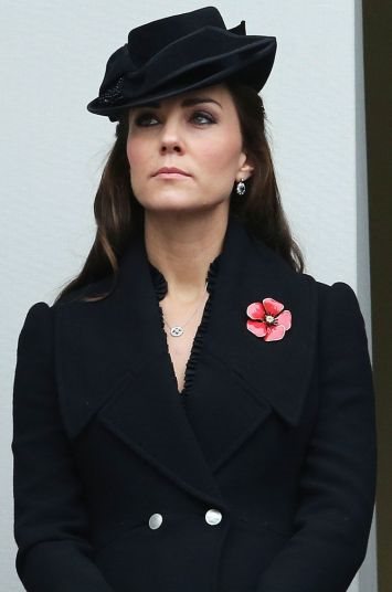Vojvotkinja Kate Middleton je za ovu prilku izabrala strogu eleganciju - crni strukirani kaput, koji je uklopila sa crnim šeširom, na kakve smo već navikli kada je u ona pitanju.