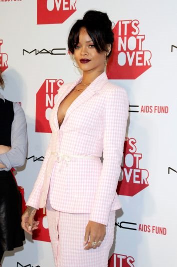 Ružičasti kostim nalik kultnim Chanel modelima od tvida je imao dubok dekolte i šlic po sredini prednjeg dela, ali to nije nimalo umanjilo dobar utisak pevačice sa Barbadosa koja je kompletan look nadogradila urednom punđom, ružem u zavodljivoj bordo boji, srebrnim alkama i ženstvenim sandalama u pastelnoružičastoj boji.