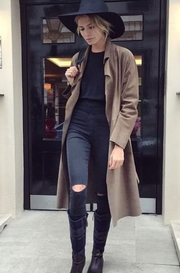 Kožne čizme Tommyja Hilfigera bile su kao stvorene za hladno britansko vreme, a tu se našao i lepršavi Burberry trenč u maslinasto, zemljanom tonu. Kao velika obožavateljka šešira, ruska trendseterka je ovaj look začinila šeširom šireg oboda, s potpisom brenda Maison Michel u crnoj boji...
