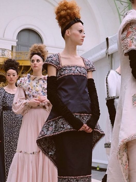 Bogatstvo tekstura dobiveno je i raznim vezovima, bogatim zlatnim aplikacijama te zanimljivom tehnikom pletenja traka tkanine. Silueta je uglavnom ženstvena, ali Lagerfeld se igra s krojevima muških odela koje prilagođava ženskom telu i stvara zanimljive nove forme.