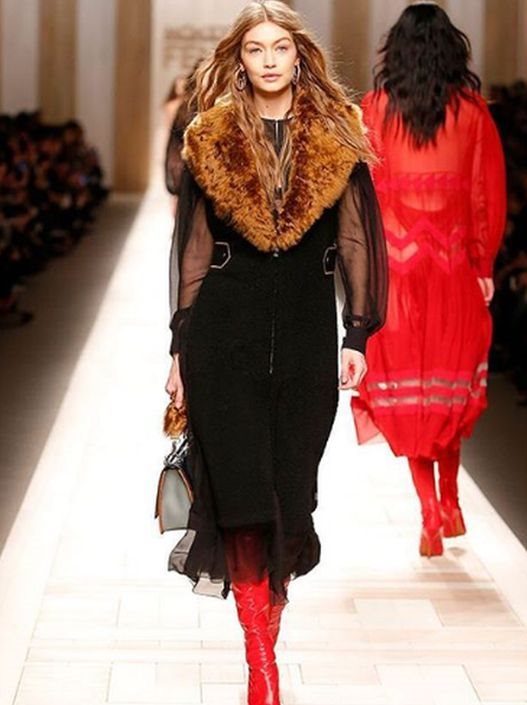 Lagerfeld je tako prikazao savršeno krojene kapute, kombinacije strogo krojenih sakoa i plisiranih suknji, vunenih pantalona ravnog kroja i belih košulja od čvrstog popelina, a nekoliko su outfita činile samo raskošne bunde ili elegantni kaputi nošeni uz crvene kožne čizme sa špičastim vrhom koje su sezale do iznad kolena. Pravi #prettywoman momenat je bio kada je Bella Hadid prošetala u beloj, maksi košulji preko koje je ponela crni blejzer.
