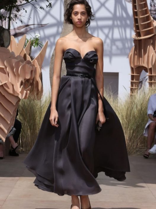 Iako je lista zvanica bila internacionalna, kolekcija sama je bila više kosmopolitska. U samoj formi dominirale su Dior krojevi - akcenat na struk, suknje pun krug, strukirani sakoi koje je Maria rekonstruisala u fluidne modele prepune falti, opredelivši se za sivkaste nijanse u većini modela.