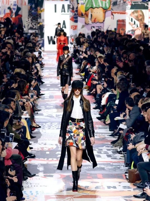 Revija je održana u muzeju Musee Rodin koji je spolja bio prekriven kolažima i posterima na kojima su se nalazili isečci iz novina, intervjui ali i citati žena poput Hillary Clinton koja je 1995. godine izjavila "Women's Rights Are Human Rights".