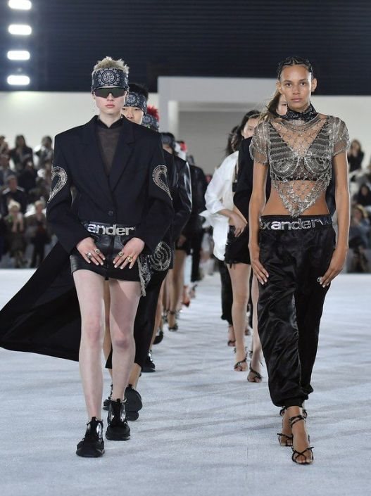 Sama kolekcija je bila u njegovom maniru prepuna seksi-sportskih komada stilizovanih sa bandana maramama i novim kožnim patikama koje je Wang uradio u saradnji sa Adidasom, ali i super elegantnim baletankama sa nitnama i trakastim kaiščićima.
