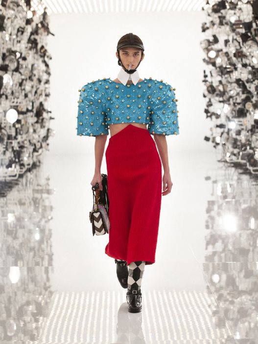 Već na početku revije, osećao se uticaj kreativnog direktora Balenciage Demna Gvasalie - asimetrični svileni gornji deo, cvetni print od glave do pete, te čizme do bedara. Tu je i preplitanje njihovih logotipa, od monograma do punih naziva. ''Demna je zaista uživao u ideji da koristimo njegov stil i transformišemo ga u nešto drugo'' rekao je Michele. ''Nije u pitanju krađa mode od drugih dizajnera, mi smo prijatelji i ovo je kolaboracija. Ne osećam teret istorije koju imaju neki francuski brendovi" dodao je. Sastanak modnih superheroja odmah je eksplodirao na društvenim mrežama, što je verovatno i bio jedan od glavnih ciljeva.