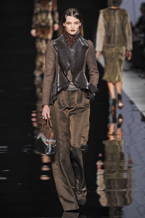Od 2007. godine uske kratke haljine postaju zaštitni znak ove modne kuće, s tim što ih svake godine viđamo u nekom novom izdanju. Ovog puta, u pitanju su prsluci od krzna i pitonove kože, sa ili bez rukava, najčešće sa kaišem koji manekenkama daje izgled žena-ratnica, ali je primetno da je očuvana doza ženstvenosti i seksipila koja je karakteristična za Herve Leger revije. Foto: