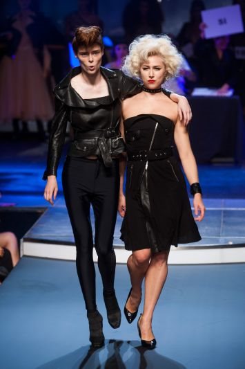 Iako je ovo bila definitivno jedna od najzabavnijih revija na Pariskoj nedelji mode, Gaultier nam je pored šoa priredio i modni spektakl - kožne, asimetrične jakne, majice s upečatljivim printom, kombinezoni sa volanim u cvetnom dezenu, kožne pensil suknje, čipkani top i prozirne bluze na tufne. Opet su pistom prošetali modeli u Amy Winehouse stilu, a ključni detalji su bile čipkane, mrežaste čarape, metalni lančiči, crvene lakovane cipele i beretke!