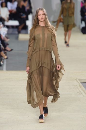 Plisirani šifon u močvarno zelenoj, beloj, puder ružičastoj i modro plavoj dominirao je na reviji poznate francuske modne kuće Chloe.