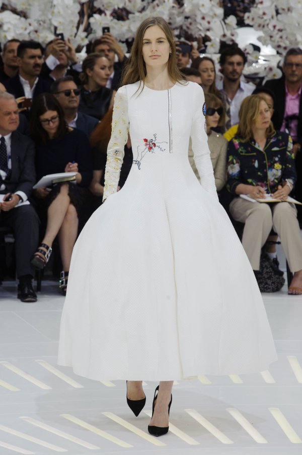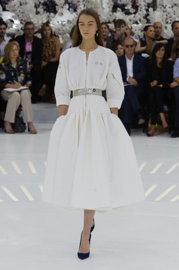 U krajnje nosivoj kolekciji, Simons je uspeo da nam prezentuje široke, svilene kombinezone (inspirisane astronautima), haljine do kolena sa rajsfešlusom i puf rukavima, pantalone sa uzanim, kratkim top modelima i dugačke, elegantne kapute koje padaju ravno niz telo (tipujemo da će ovi modeli postati must have za jesen). Sitan vez grančića i listova je ukrašavao tek rubove ivice, dok je paleta bila blago zagasita, sa dominacijom teget, bele i crne i akcentom u vidu narandžaste boje.