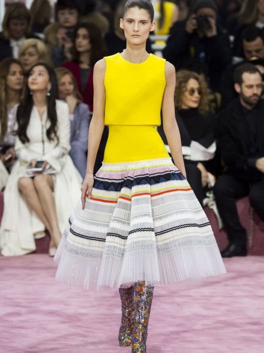 Detalji su bili ipak najefektniji: cvetovi upleteni u čipku, tkaninu i baršun, floralni motivi na plastičnim kabanicama, čarape s bogatim uzorcima, perlice i fantastične duboke i kratke, kožne čizme koje su se sjajile ispod haute couture kreacija u jarkim bojama senfa, crvene, tikrizne, žute ...