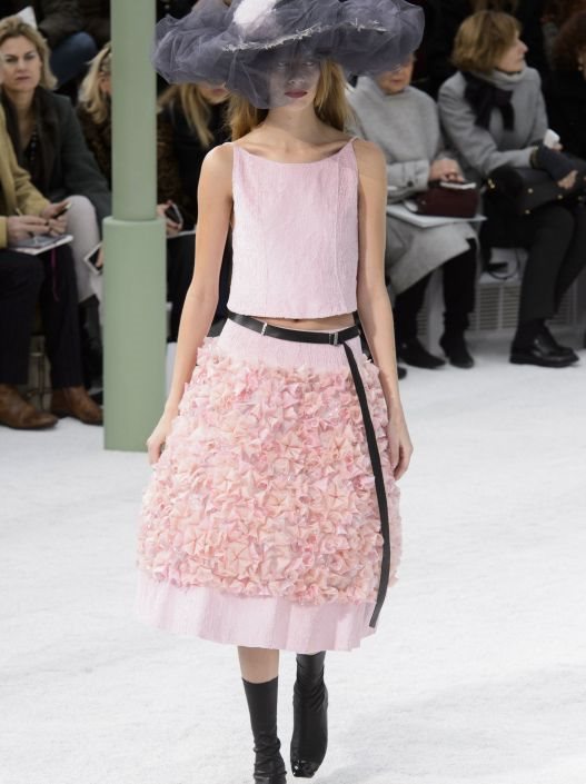Od detalja dominirao je cveće, kao i činjenica da je Karl spustio struk te predstavio suknje niskog struka koje je kombinovao uz kratke top, prozirne modele. Veliki teatralni, dramatični šeširi i kapice ukrašene mrežicama savršeno su finiširali njegove bajkovite haljine i suknje iz haute couture kolekcije.