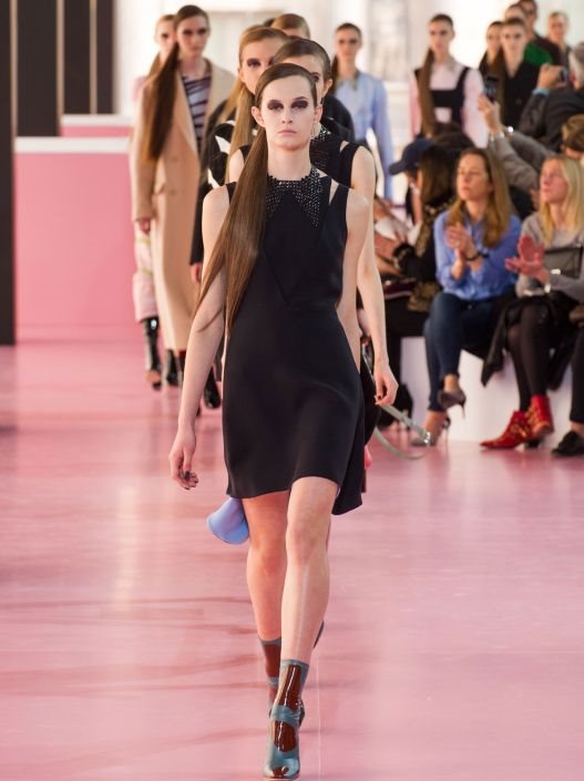 5. Rep i dalje nastavlja da bude glavna frizura Dior žene. Umesto futurističnog kog smo videli na Haute couture reviji, ovoga puta Raf je svoje modele stilizovao u blažu i ležerniju varijanu repa sa strane, dužine skoro do struka ( ekstenzije za koje je zaslužan Guido). Make up je bio jak, akcenat na crnoj boji dok je u svetu manikira dominirala plava boja, i to vedrije, svetlije nijanse.