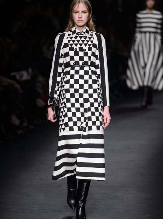 Birtwell, koja je još živa i koja je na prethodnoj Pre-Fall kolekciji sarađivala sa dizajnerskim duom, u najnovijoj je doprinela najviše u sferi motiva, posebno motivu zmaja koji se pojavljuje na savršenoj crnoj trapez haljini. Materijali su opet ostavili moćan utisak: krep svila, šifon, muslin, koža.... Od modela pored haljina najviše su nam pažnju krale lepršave, romantične i ženstvene bluze kao i široke, dugačke pantalone. Neobičan je bio samo intro koji je na pistu doneo nesvakidašnju paletu Valentina, crno-bele haljine i mantili od kože u spektru debljih pruga, ali kako je revija odmicala i kako su se zaređale haljine u crnoj boji, s panelima i čipkom i vezom koja je dočarala Klimt platna, uplovili smo u poznate Valentino vode zbog kojih i volimo ovaj brend.