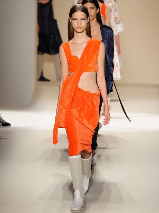 Njena revija je počela minutom ćutanja, nakon čega je na pistu zakoračila prva manekenka odevena u eteričnu, plišanu haljinu snežno bele boje koja nas je uvela u kolekciju nosivih, ženstvenih, laganih komada s dozom androgenog.