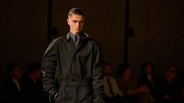 Silueta je doživela suptilnu, ali značajnu metamorfozu. Klasični blejzeri širokih ramena sada su strukirani tako da stvaraju gotovo peščani sat, evocirajući verziju power dressinga osamdesetih. Muška odela su dobila svoju "zlu sestru" u vidu kompleta od sjajne crne kože, dok su se ispod poruba pantalona nazirale uske čizme. Posebnu pažnju privukli su pleteni džemperi sa dubokim, okruglim izrezima koji otkrivaju ključne kosti i torzo, donoseći dozu ranjivosti.