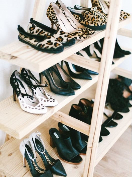 Potrebno je samo da poznajete nekog kvalitetnog i brzog stolara koji će vam od svetlog nekog drveta napraviti policu u obluku slova A sa horizontalnim, otvorenim pregradama na koje ćete moći da odlažete cipele. Za inspiraciju nek vam posluži predlog blogerke iza sajta A Pair & Spare, koja je osmislila i realizovala jedan savršen cipelaranik u koji smo se zaljubili.