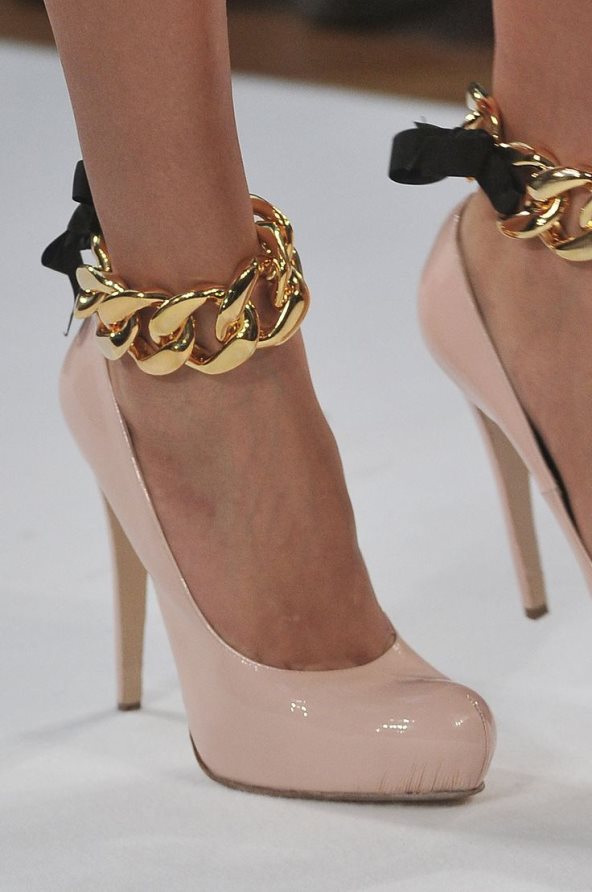 Prošle sezone imali smo najavu narukvica za stopalo s masivnim zlatim cuff narukvicama nošenim na sandale i štikle u špic, ali tada trend nije zaživeo. Međutim, ono što je sada trendi je sasvim drugačije od debelih narukvica - nose se tanje minimalistične srebrne i zlatne narukvice, "ciganske" narukvice s lancima te boho narukvice s perlicama i sitnim privescima.