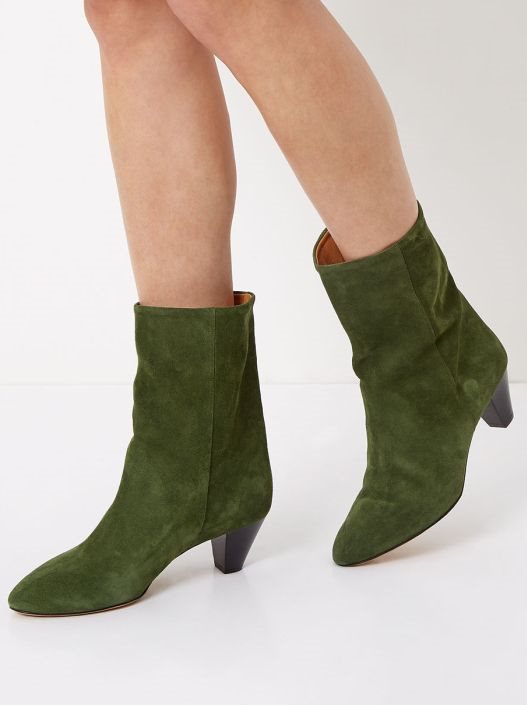 Kratka peta, širi model, prevrnuta koža. dužina do malo iznad članka i pregršt zagasitih, toplih boja čine ovaj model apsolutnim pobednikom. Dyna model podseća na čizmice iz osamdesetih a najbolje idu uz boho, senzualni stil koji i krasi Marantova izdanja.