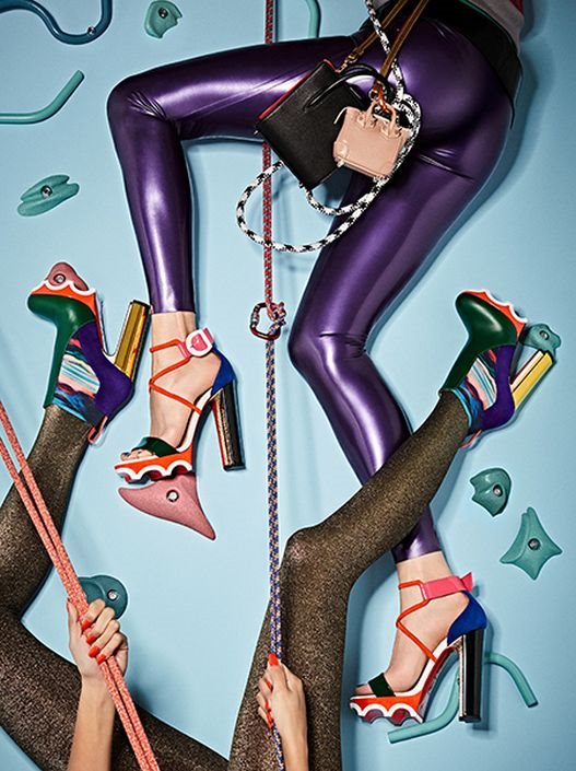 Vrlo živopisni modeli prepuni jarkih boja i detalja nose specifična imena: Crampetta, Athletika and Lolacrampon. Krasi ih pored ultra visokih (debelih) metalik potpetica, cik cak kramponi u neon narandžastoj i kožni dizajn prepun proreza.