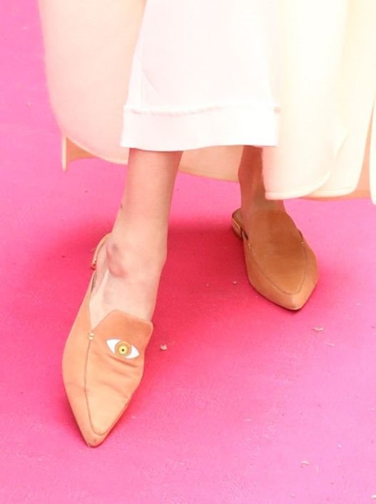 “Želela sam neki model koji mogu da nosim u svim mesecima. Upravo zbog toga sam se opredelila za mules. Simboličan detalj u vidu "zlog oka" je savršen način da papuče postanu neka vrsta amajlije koja će vas štititi od negativnih ljudi i energije. Oduševljena sam kako su na kraju ispale papuče jer su prelepe! Toliko su lepe da ne prestajem da ih gledam."