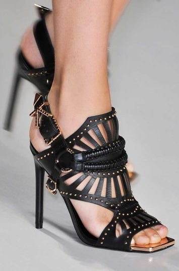 Ako je suditi prema do sada viđenom, sledećeg leta ćemo šetati ili u statement kožnim sandalama koje kao da je kreirao Gianni Versace, sve sa zlatnim nitnama, ili opet u ravnom. Prednost imaju udobne ravne sandale od mekane kože sa štrasom i ukrasnim kanapom. Od boja u prolećnim kolekcijama su dominirale jarka crvena, crna i metalik kao i kombinacija jednobojne kože i bojenog platna u apstraktnom dezenu. Foto: