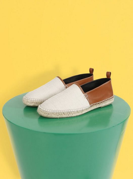 Njegov pomalo eklektičan pristup modnim dodacima vidljiv je u metaliziranoj srebrnoj koži i dvobojnim espadrilama s utisnutim logotipom kuće. Izrađene od fine teleće kože savršeno se prilagođavaju nozi, a đon od kanapa postavljen je tankom gumom koja pruža udobnost.