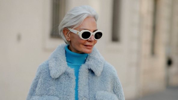 Teget je boja koja laska mnogim ženama starijim od 50 godina. Manje je gruba od crne i ima laskav efekat na sedoj kosi. Odaberite teksas jaknu ili haljinu, a za još stilizovaniji look kombinujte je sa sivom.