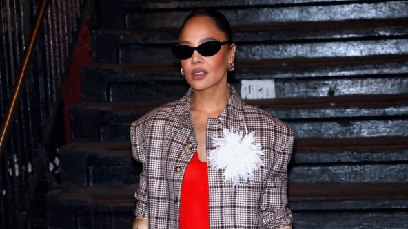 Glavna junakinja Netflixove serije "His&Hers", Tessa Thompson ponela je klasičnu verziju ovog čuvenog modela u toploj bež nijansi sa punom blok štiklom i siluetom mule sandala, upotpunjenu sjajnim crnim vrhom.