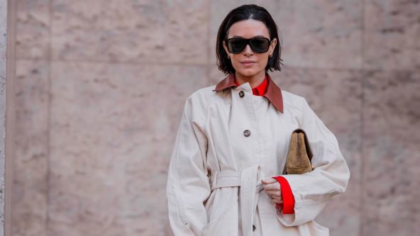 Suštinski prelazni komad koji spaja hladnu i toplu sezonu nesumnjivo je trench mantil. Za 2026. godinu, opcije su beskrajne. Parižanke, naravno, najčešće biraju klasične bež verzije, ali se sve više okreću prljavo-belim nijansama i detaljima poput podignutih, levkastih kragni.