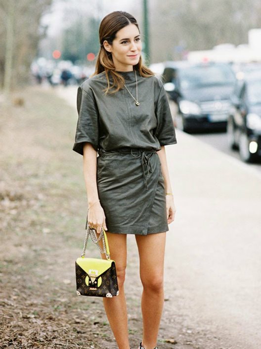 Opredelite se za mini haljinu sa kožnim detaljima. Bilo da je cela od kože (kao što Gala Gonzalez nosi na slici) ili samo na pojedinim delovima... Jednostavno, ukombinujte je sa minimalističkom tašnom, pojasom i dubokim čizmama.