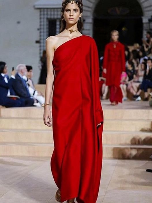 Tome je najviše doprinelo okretanje ka antičkoj kulturi, modi, onoj eteričnim rimskim kostimima koje su nosile plemkinje. Uz pomoć tih elemenata, detalja Valntinova odeća je dobila jednu otmenu, a istovremeno romantičnu notu u koju su se svi redom zaljubili počev od nas.