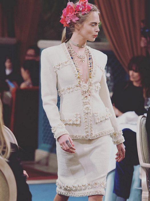 Kolekcija obiluje klasičnim Chanel kompletima sa puno izvezenih detalja, ukrasa i ručnih radova. Lagerfeld je sačuvao DNK i sve što Chanel kao jedna od iskonskih modnih kuća predstavlja, prilagođeno modernizovanom duhu današnjice.