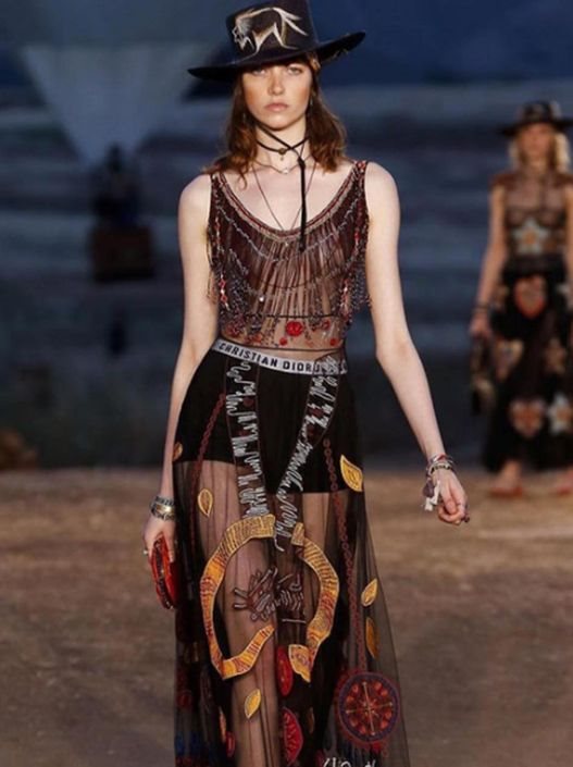 U prilično prirodnom ambijentu, gosti su bili smešteni u otvorene šatore s pogledom na brda i planine. Revija je počela odmah nakon zalaska sunca, dok su u pozadini se nalazili baloni, zakačeni ležerno za kanape, dajući kompletnom prostoru jedan spekakularan vajb. Pista nije postojala: modeli su šetali po pesku u ravnim čizmama i kožnim sandalama.