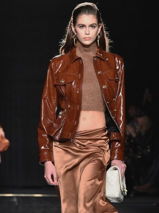 Nama je ipak najveću pažnju privukla Kaia Gerber koja je na pistu iskoračila u crop vunenoj rolci camel boje preko koje je imala sjajnu lakovanu kožnu jaknu u jarkoj camel nijansi. Ostatak je bio izabran fenomenalno - svilena polunabrana suknja sa zlatnom šnalom u boji zlata, asimetričnog kroja i duboke čizme u konjak boji.
