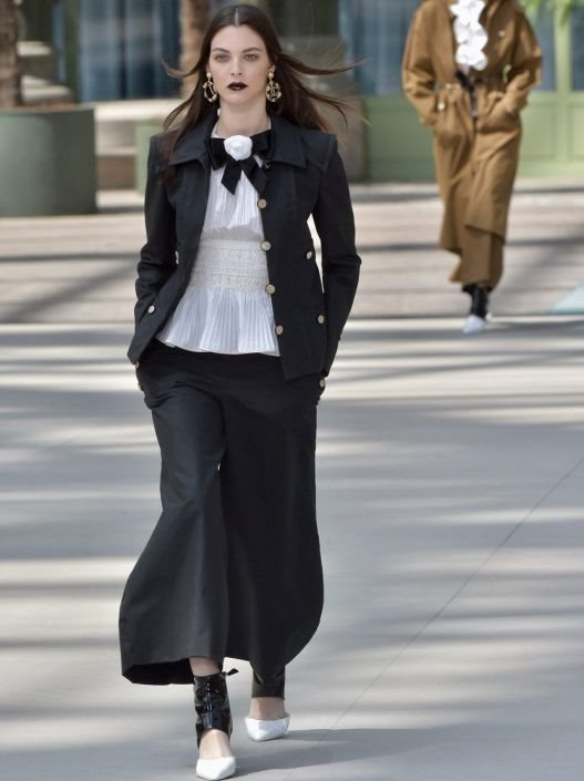 Balans su pravila klasična Chanel odela ali u spoju sa mini suknjom i širokim pantalonama 3/4, dok je kraj pripao večernjim slim haljinama sa kragnom koja je bila tipična za Karla.