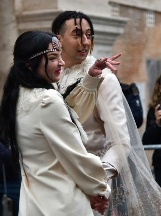 Jer, tako je izgledalo kada su na #gucci reviju zakoračili italijanski repet tuniskog porekla Ghali i njegova devojka, prepoznatljivo lice modelinga Mariacarla Boscono, u idiličnim i usklađenim krem kombinacijama koje bi najviše priličile predstavnicima Vatikana.