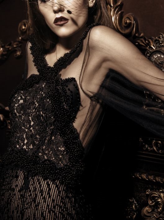 Pomalo goth, ali vrlo glam i vrlo elegantno, crna haljina sa šlepom od karnera i transparentnim gornjim delom bila je zaista mnogo više od glamurozne večernje haljine. Katie Roberts-Wood zaista je uspela da kreira crnu venčanicu, o kojoj potajno maštamo, jer se plašimo da ipak nemamo dovoljni hrabrosti za nju, ali zato Lydia Pang od nas dobija dubok naklon zbog iste!