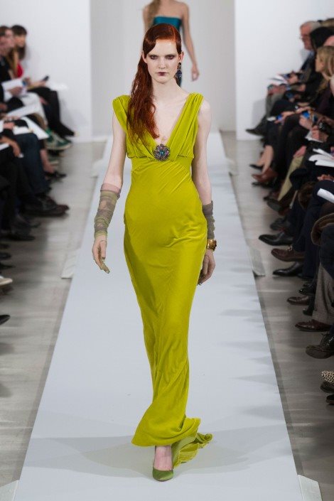 Moda devedesetih je prikazana ekstravagantnom damom u pink haljini sa dugačkim rukavicama, visokim štiklama i ogromnim šeširom.